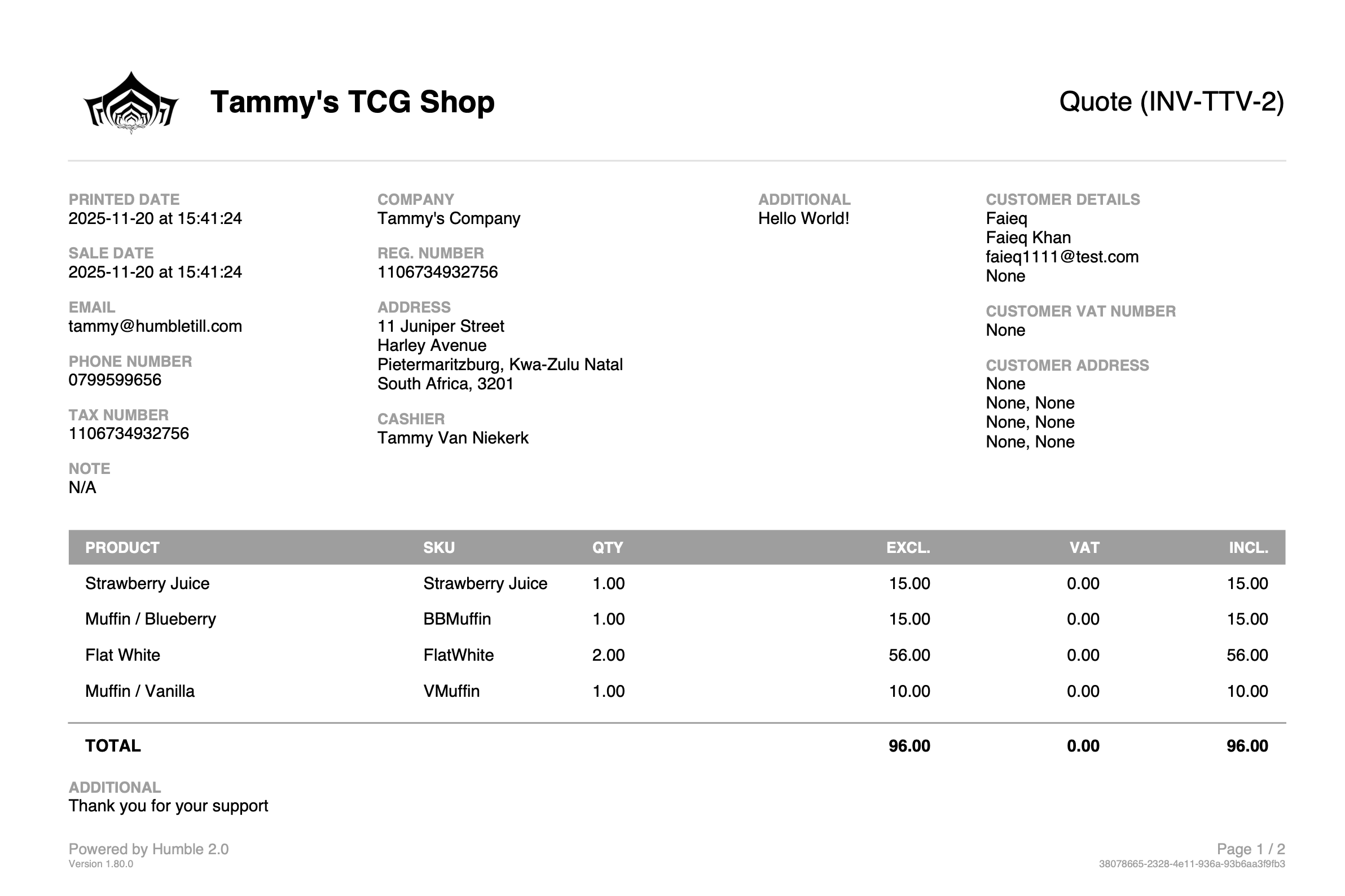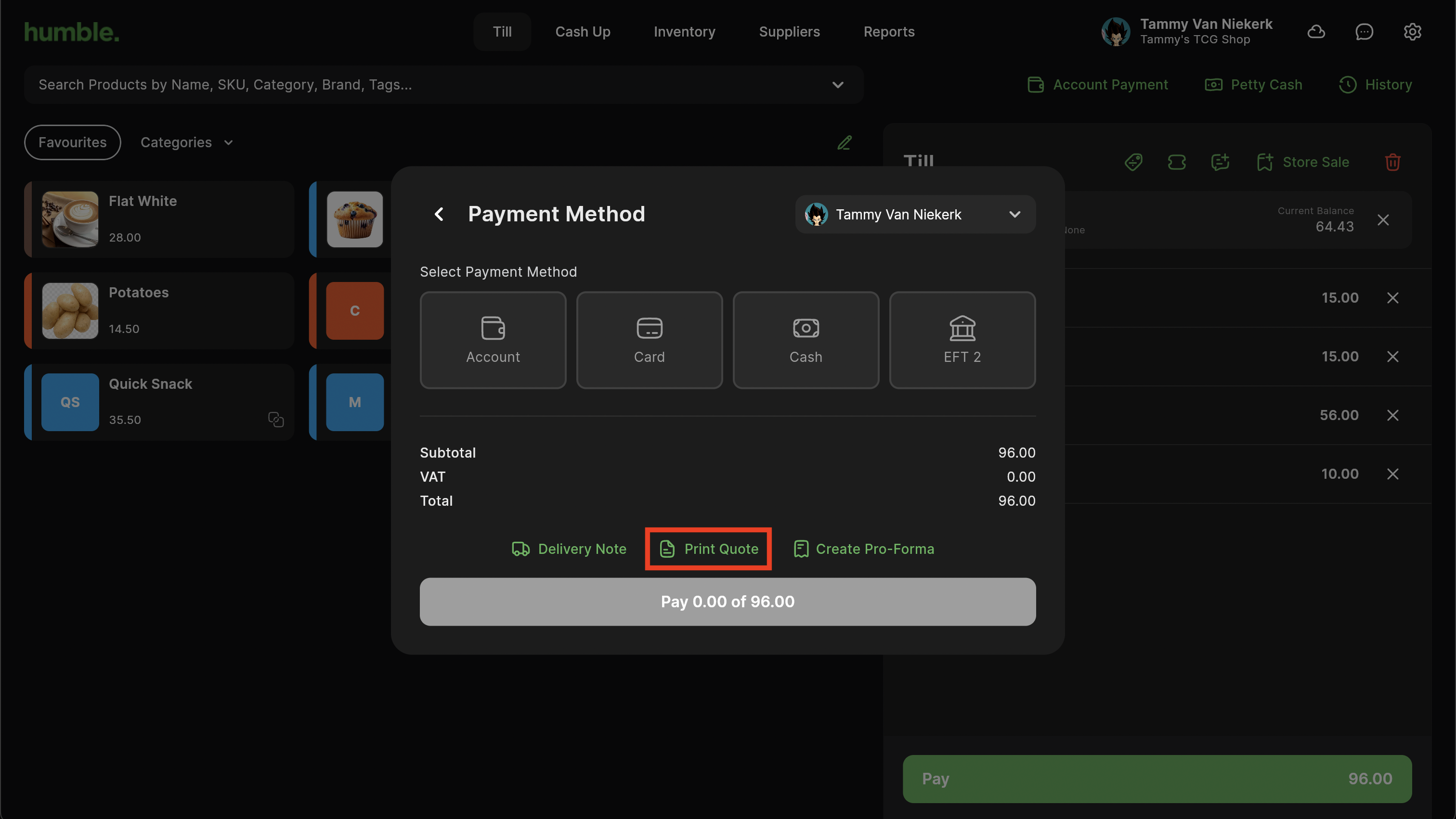 The Choose a Payment Method modal will appear. Click on Print Quote. This will download the quotation to your downloads folder or print a copy via your receipt printer.