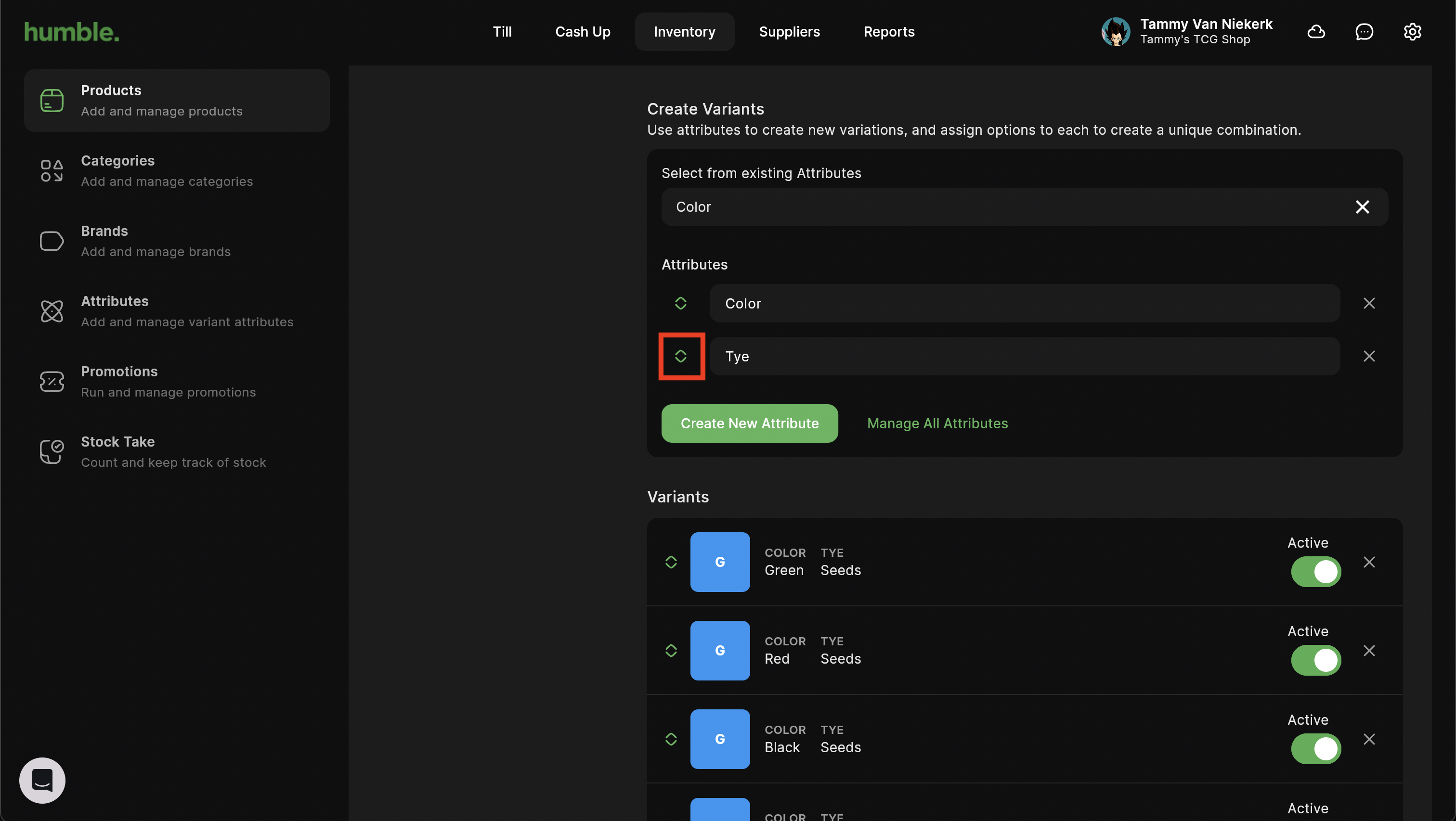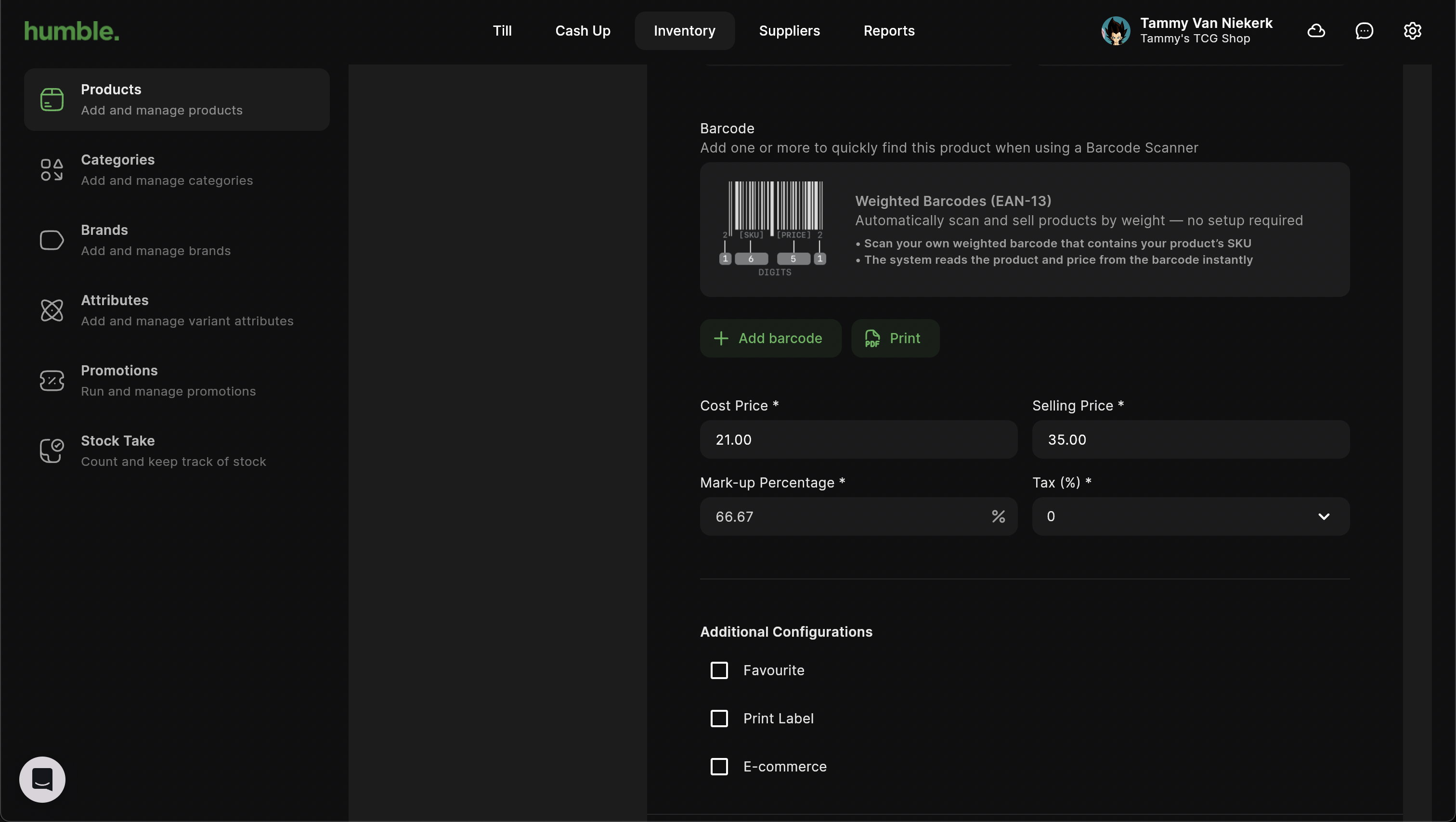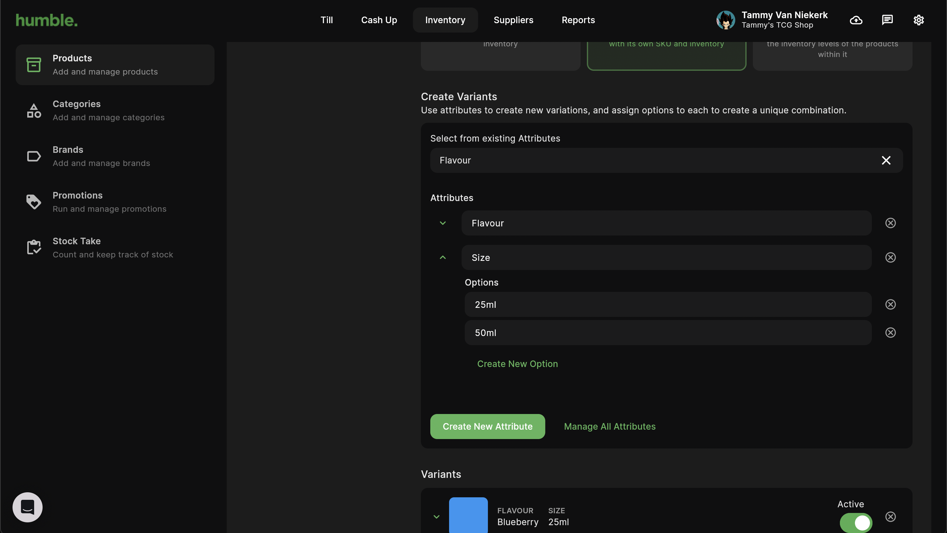 Active - Keep toggled on to ensure the product is shown in the till and can be used for sales and stock management
