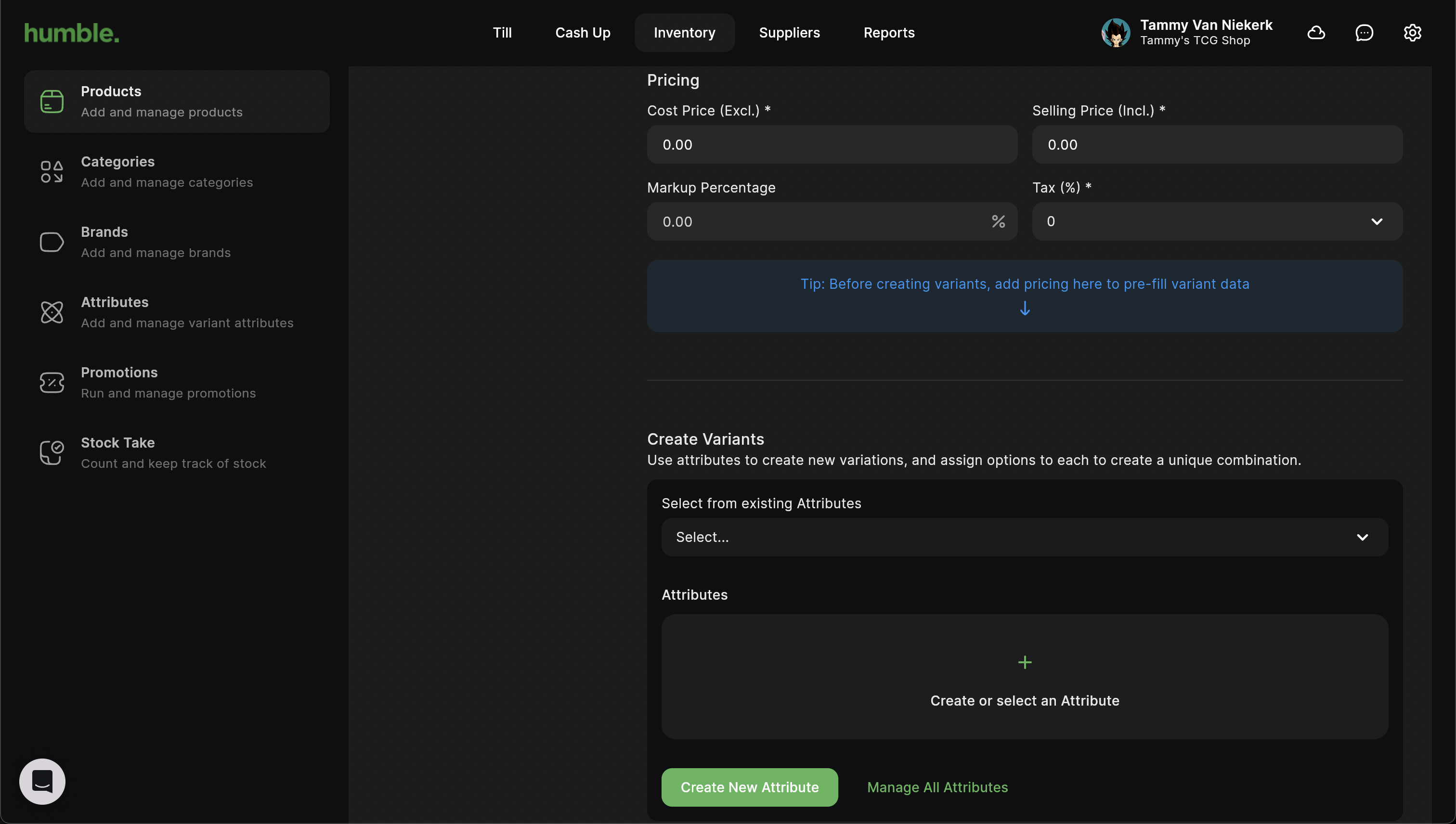Quantity - You are now able to set your opening quantity when creating a new product (✨ New)