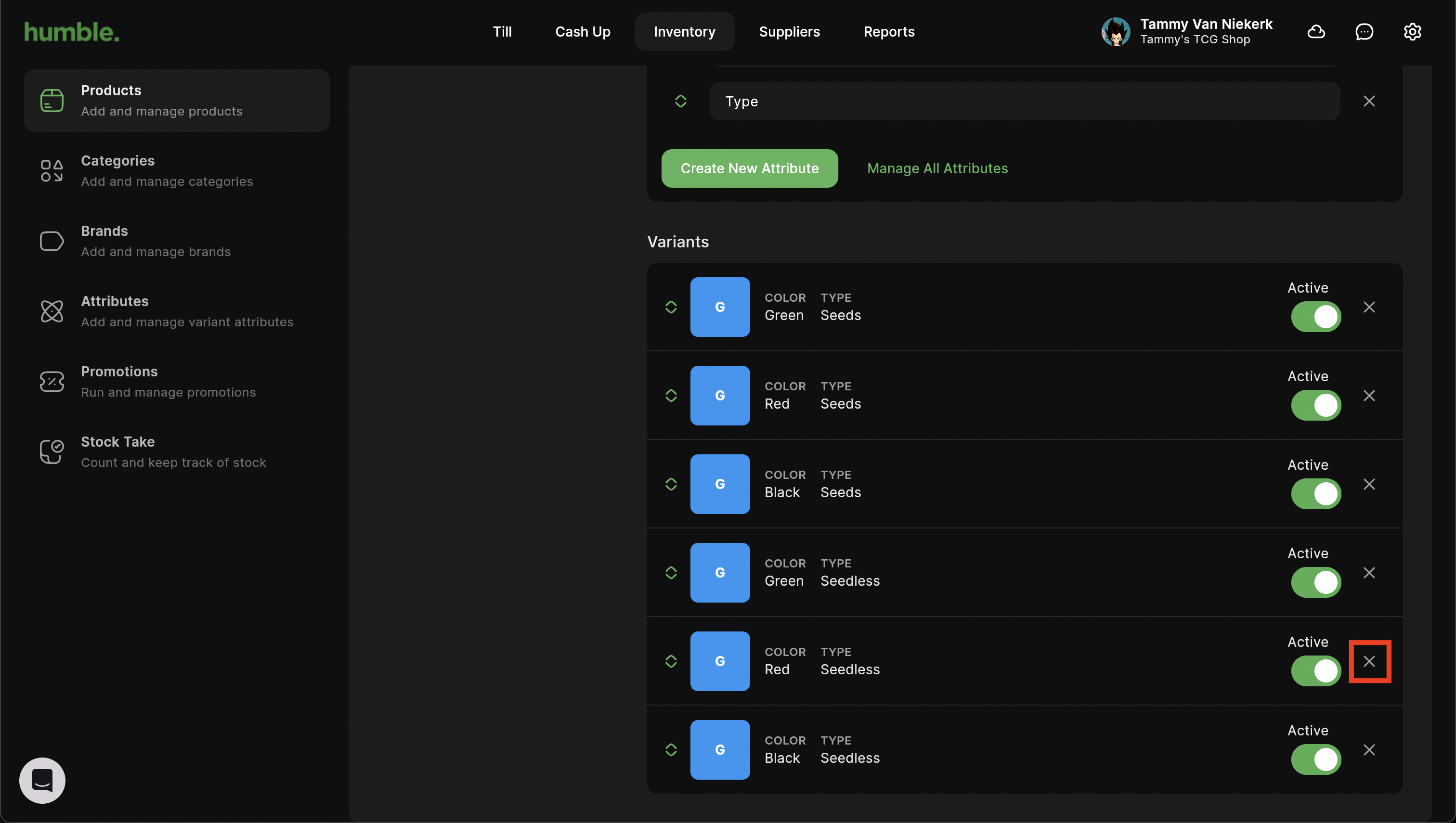 Your variant product will be created with the different variation options. If you find it has created more variants than you need, click on the X to the right of the variant to delete it.