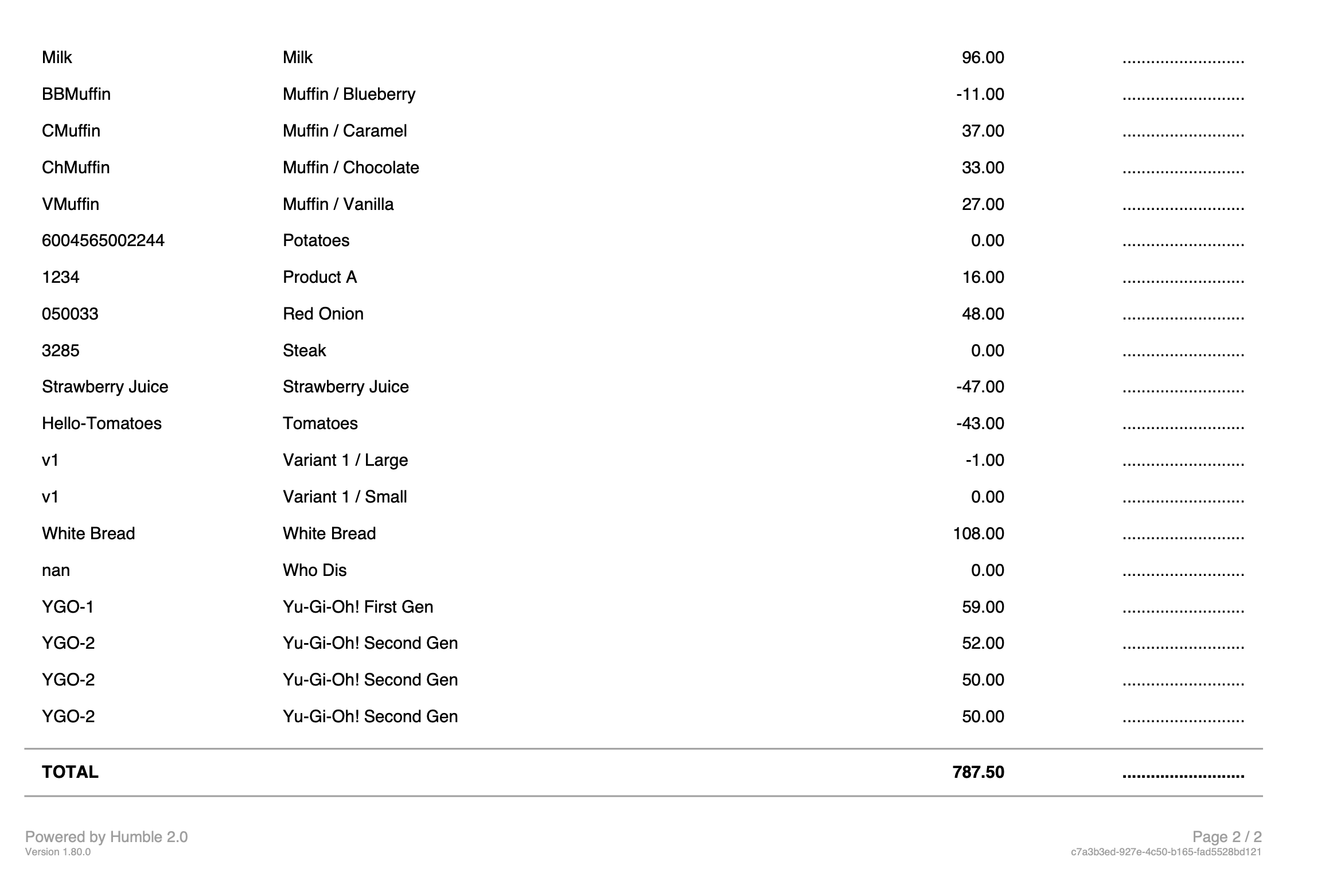 List of Products - The active products in your till