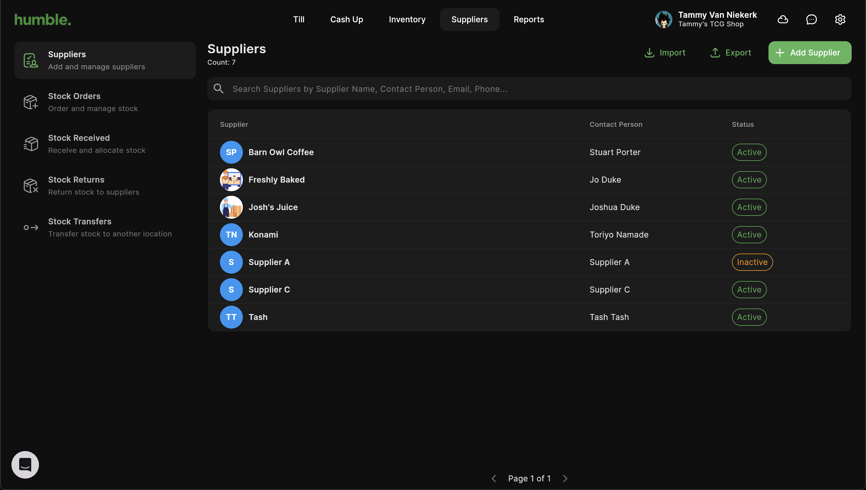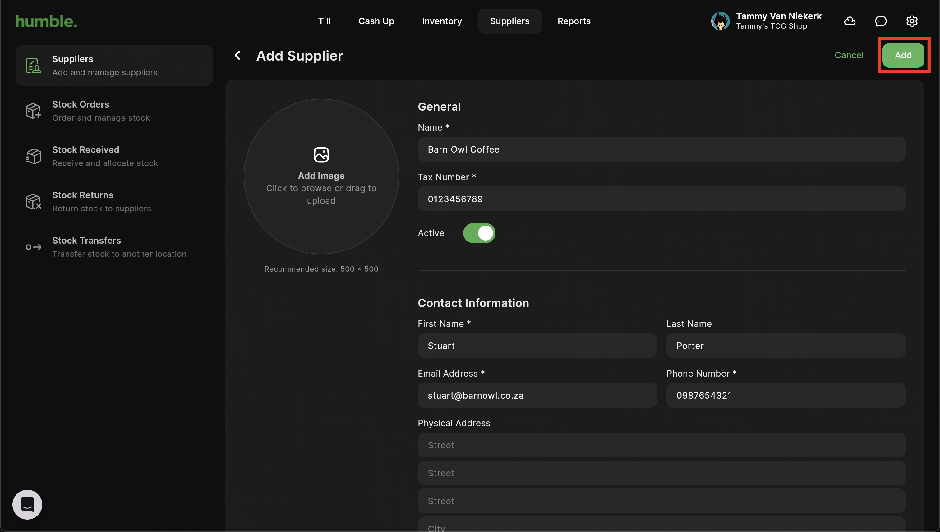 You will be taken back to the Suppliers screen, and your supplier will be added to your supplier list.