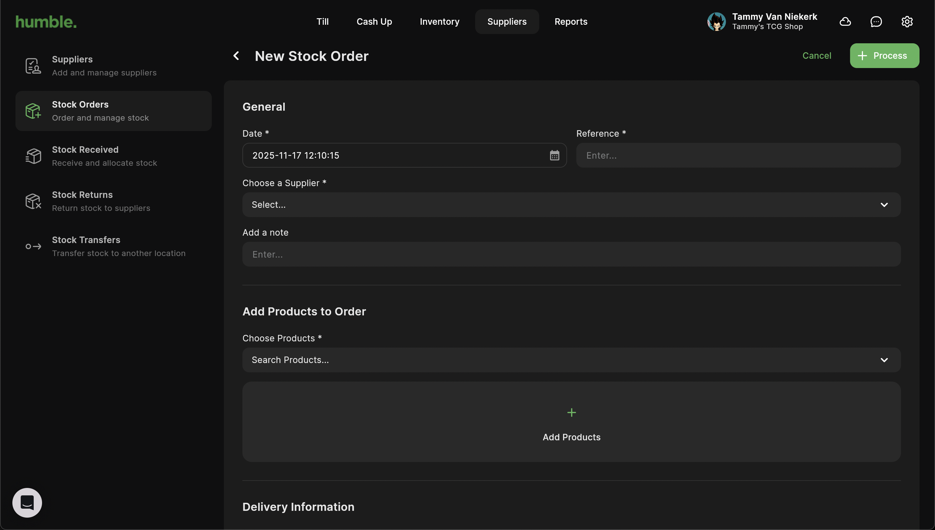 Need to order more stock from your supplier ? You can do this by creating and processing a stock order.