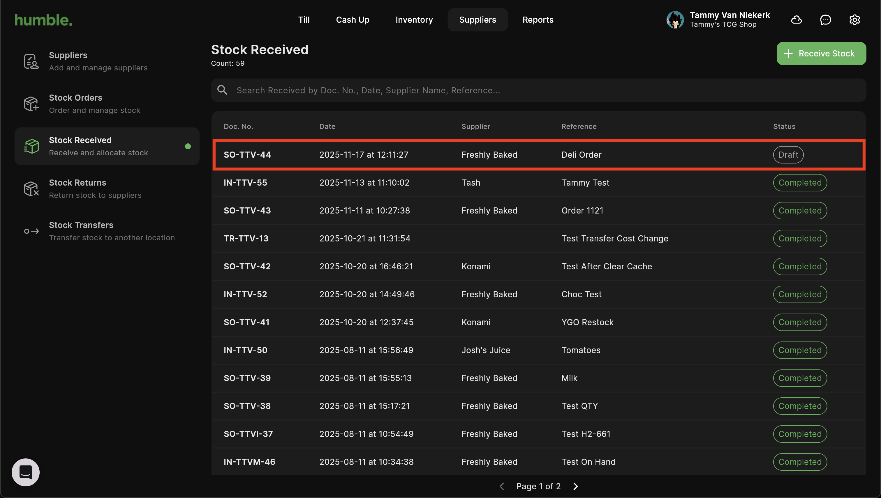 Once you have processed a stock order, an unprocessed stock receipt will be generated under Stock Received, this will be indicated by a notification dot next to Stock Received. You can view the stock receipt and process it once you have received the stock in-store.