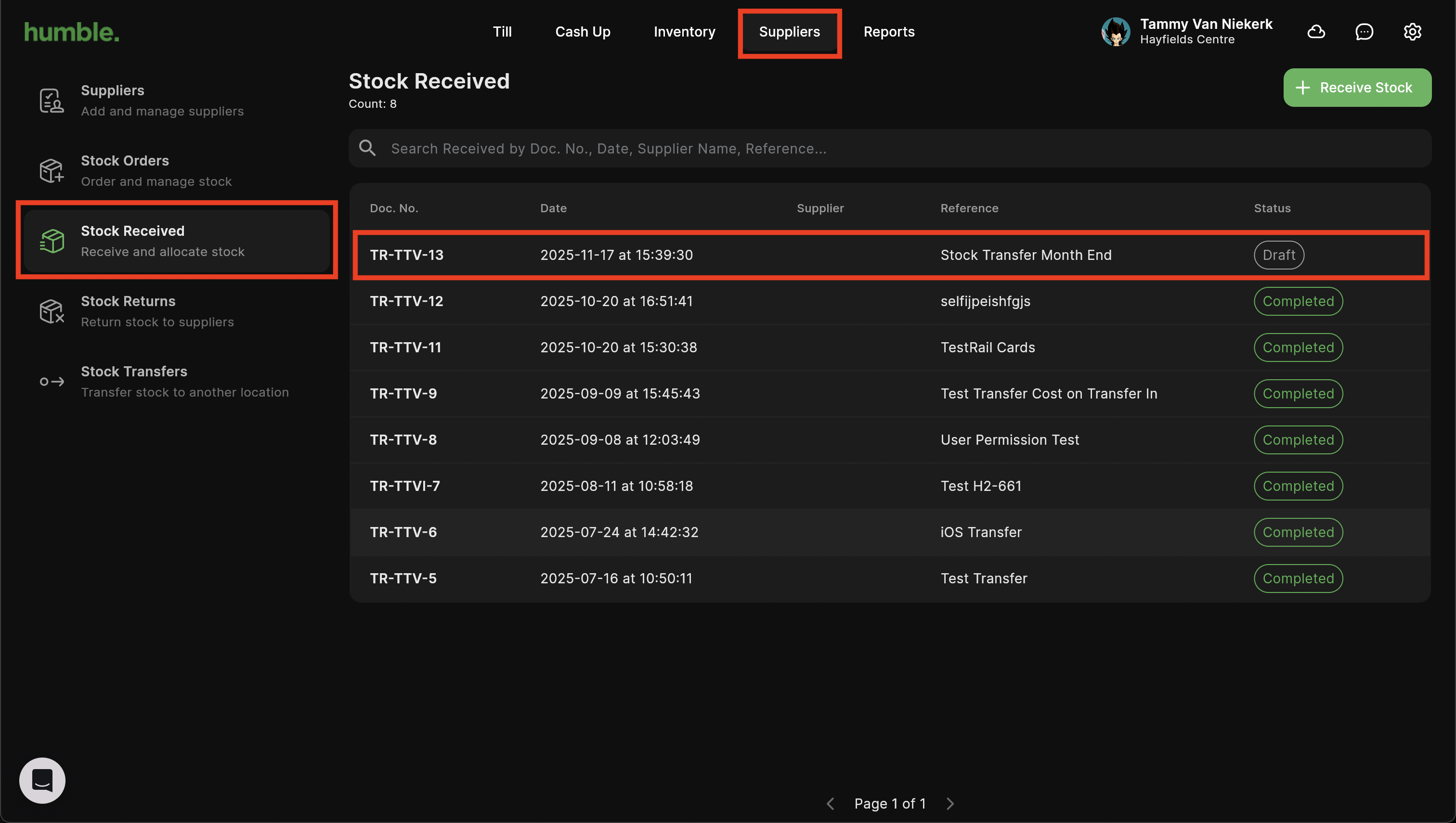 This will be indicated by a notification dot next to Stock Received. The stock receipt will be in a Draft state until you process it. Once processed, the stock will update at your second store.