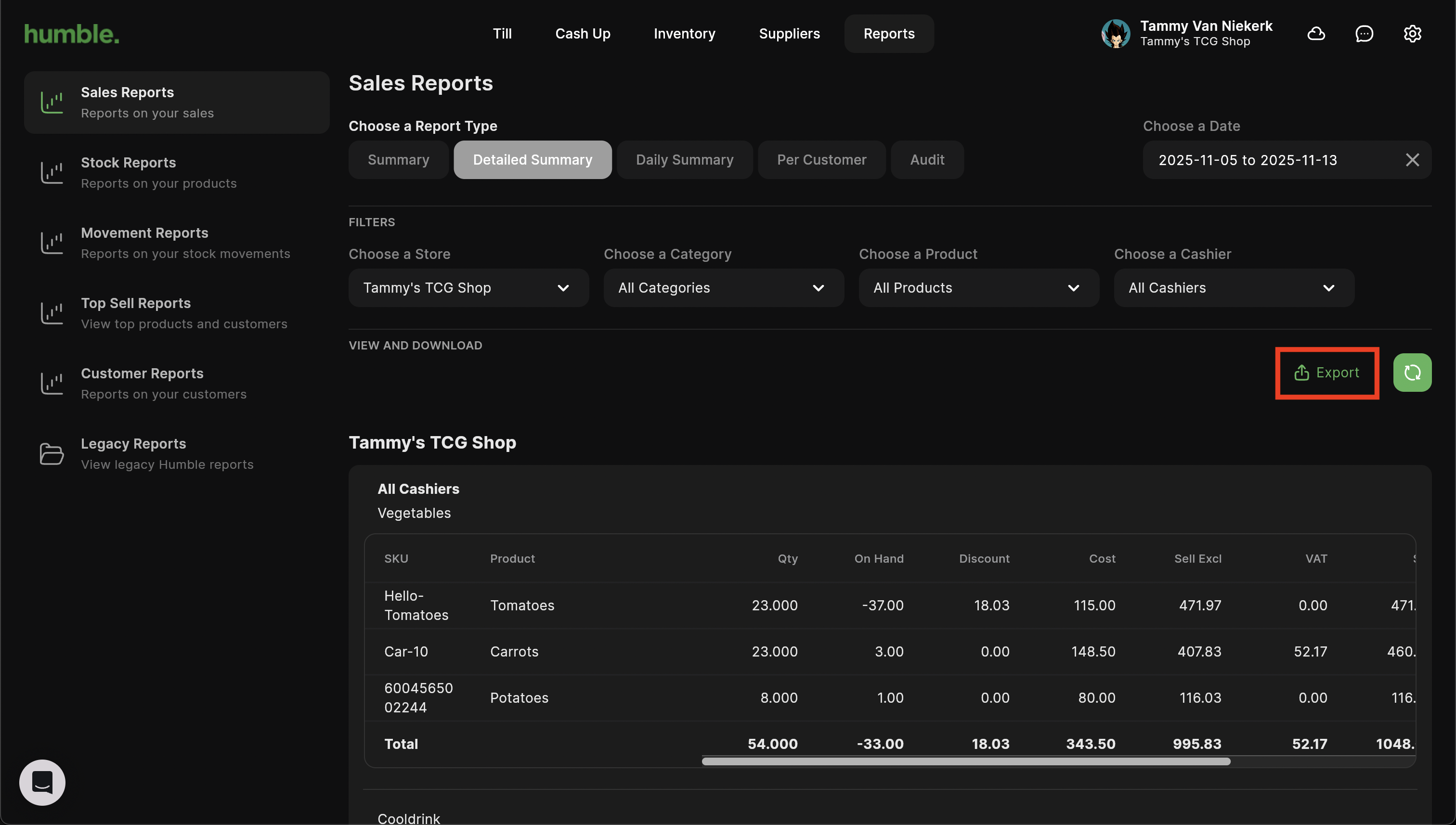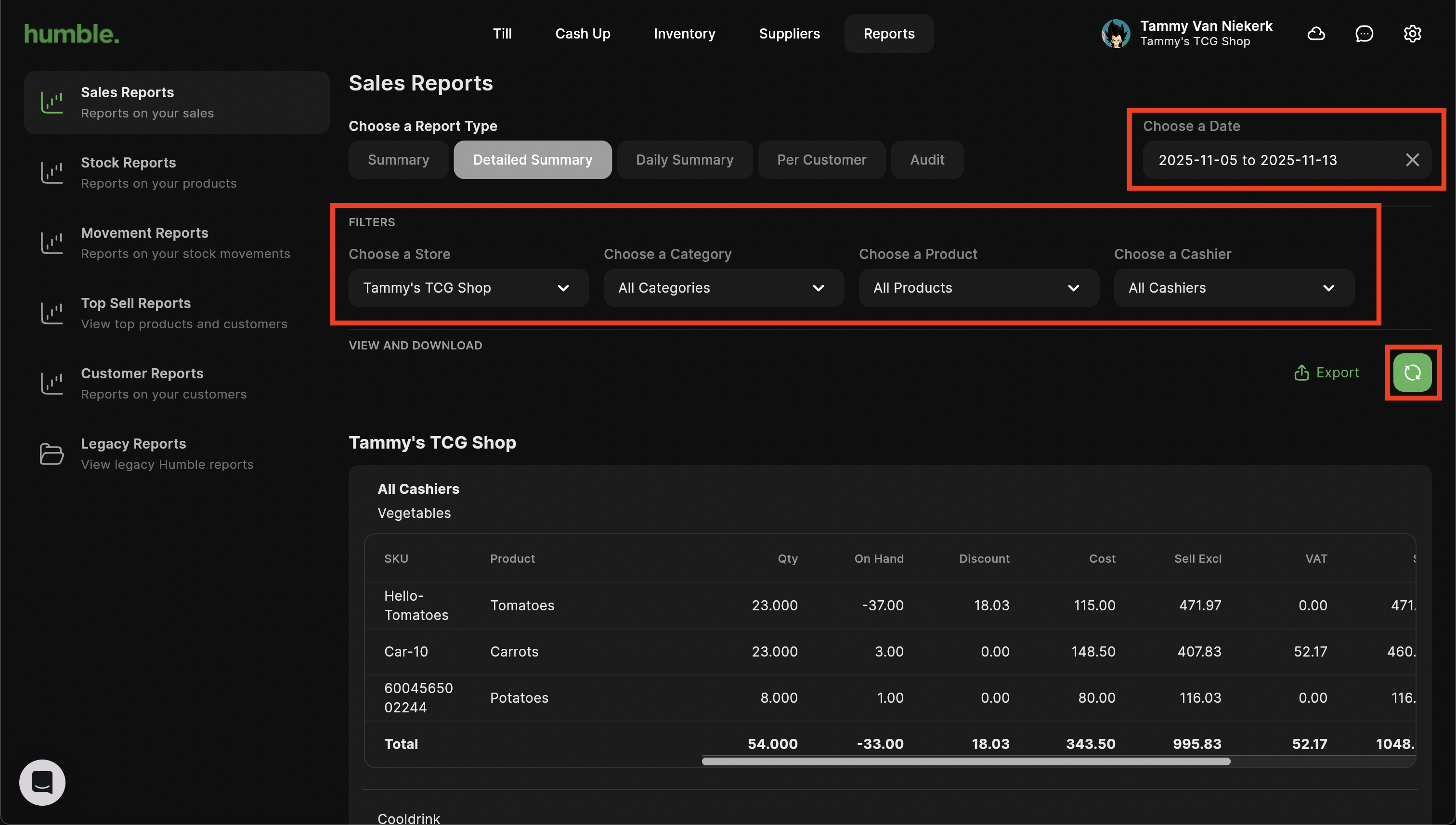 The Detailed Summary report shows you a detailed view of the sales made per item, per category for a particular store or all stores. This report can be filtered by store and date range.