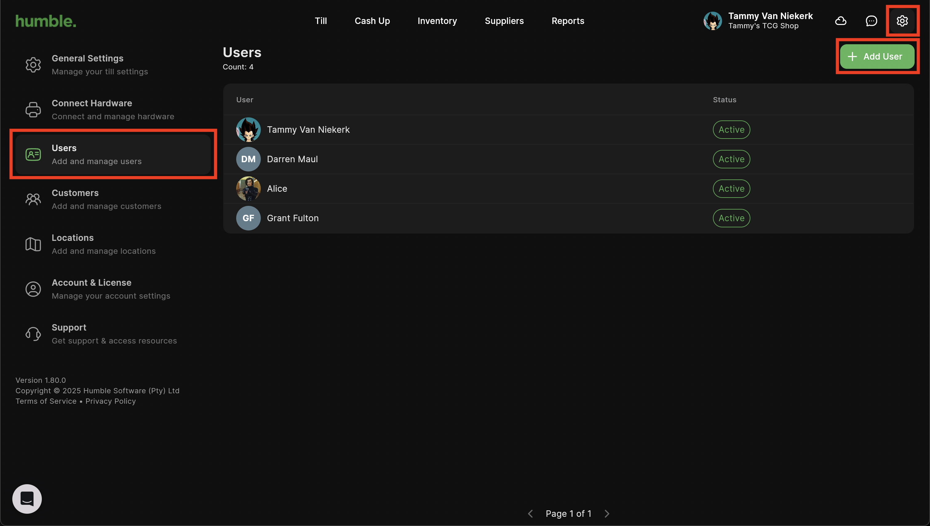 To add a new user, go to Settings (the cog on the top right next to your name). You will be taken to the General Page. Click on Users and then Add User.