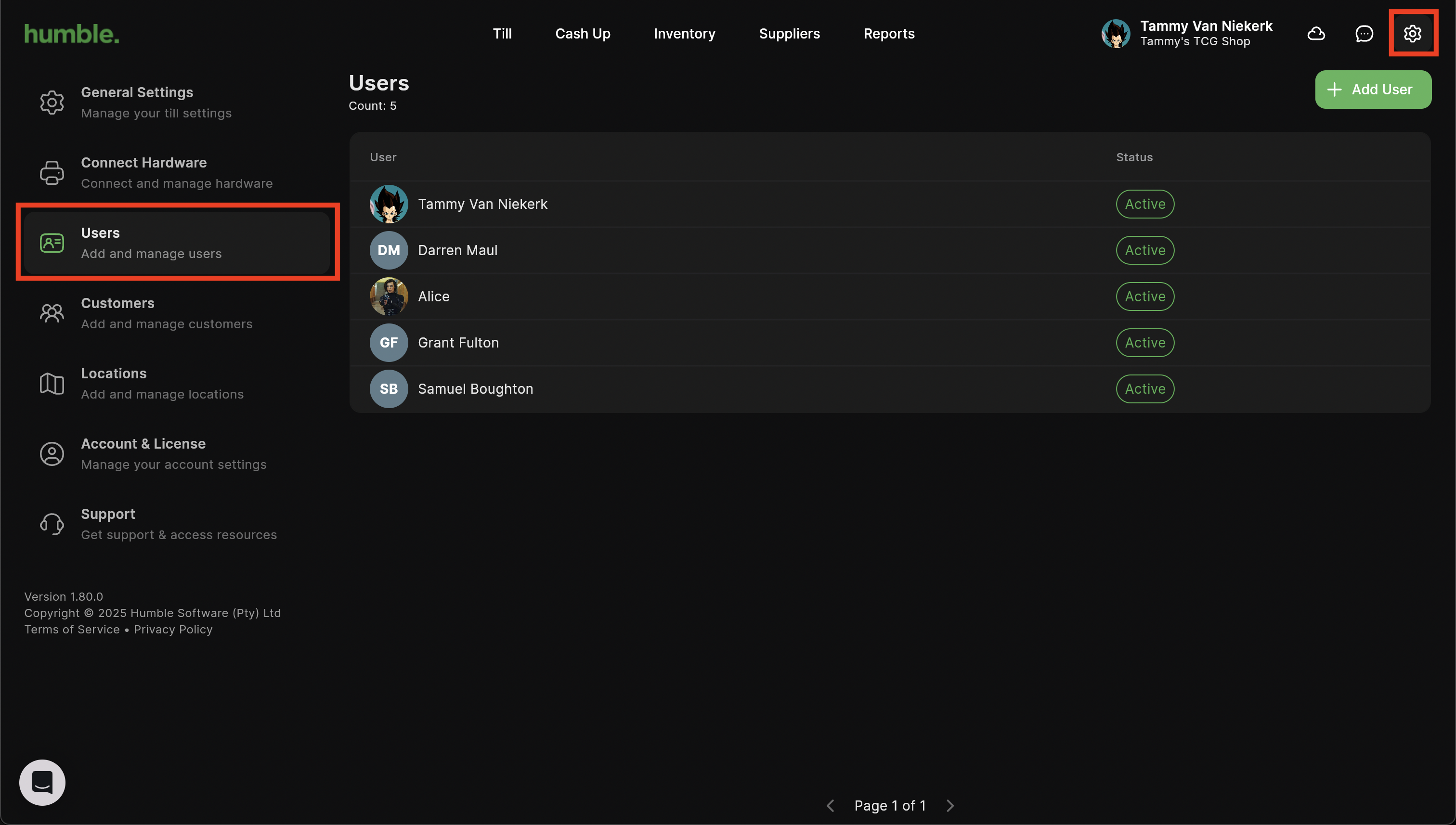 To do this, go to Settings (the cog on the top right next to your name). You will be taken to the General Page. Click on Users. You will be taken to the Users screen.
