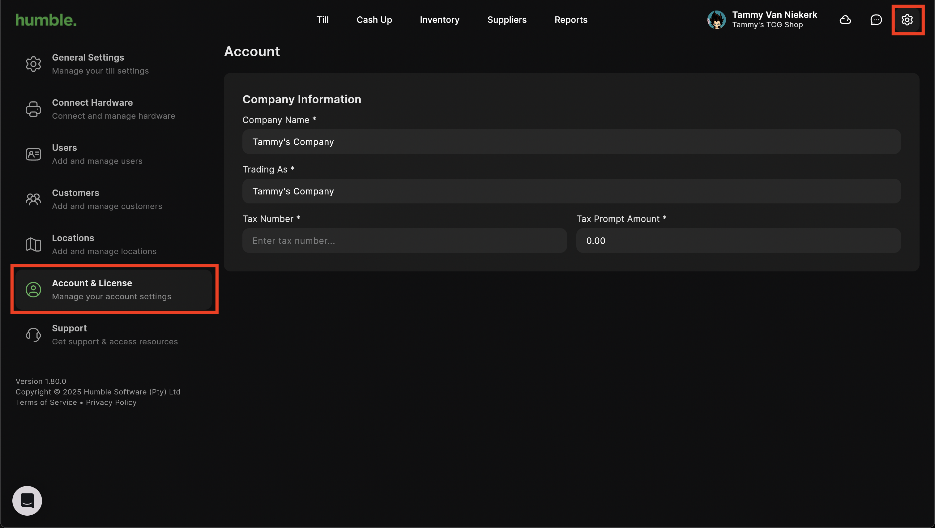 To update your company information, go to Settings (the cog on the top right next to your name). You will be taken to the General Page. Click on Account.
