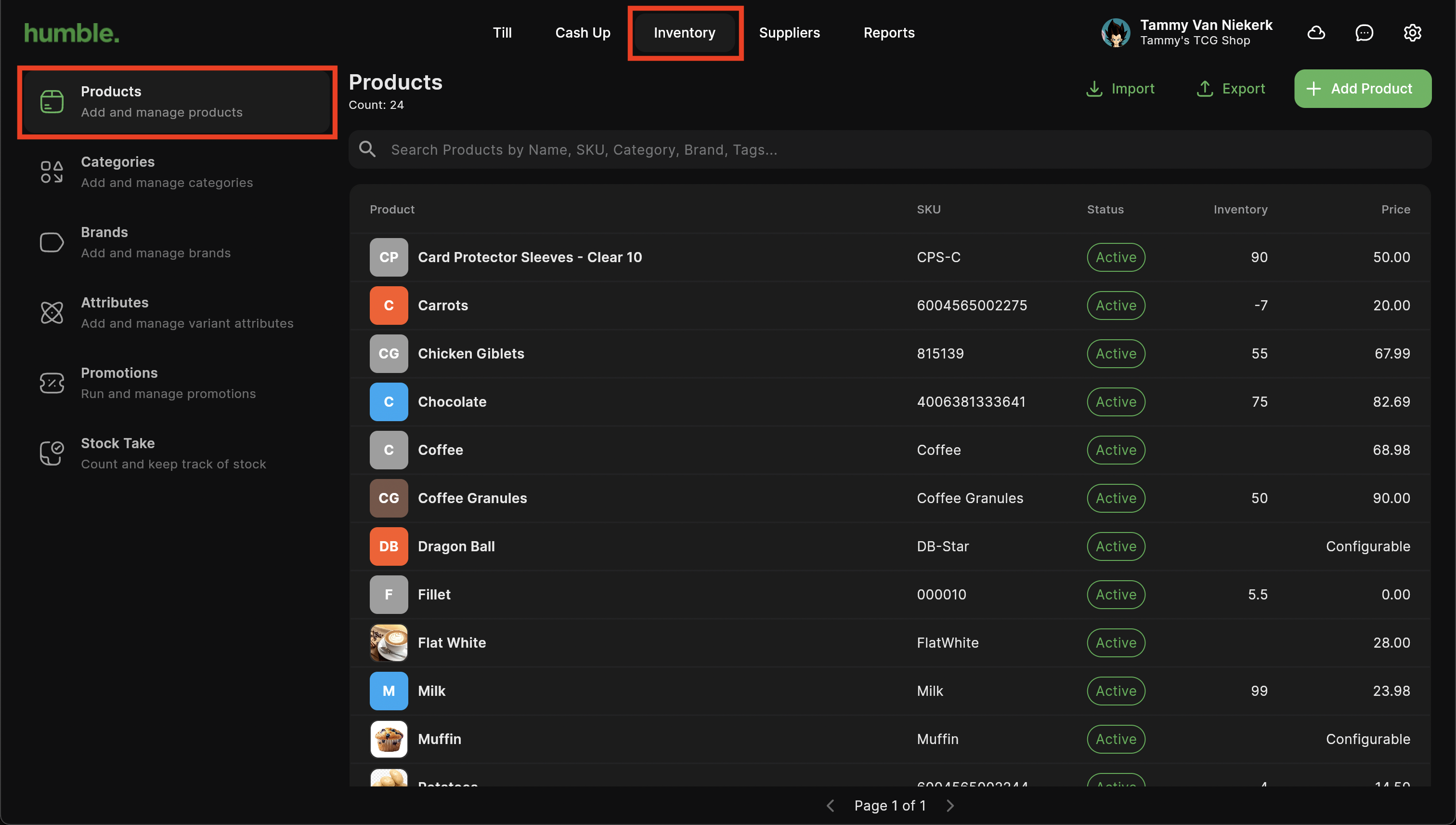 Once the scanner is connected, navigate to Inventory. You will be taken to the products screen.
