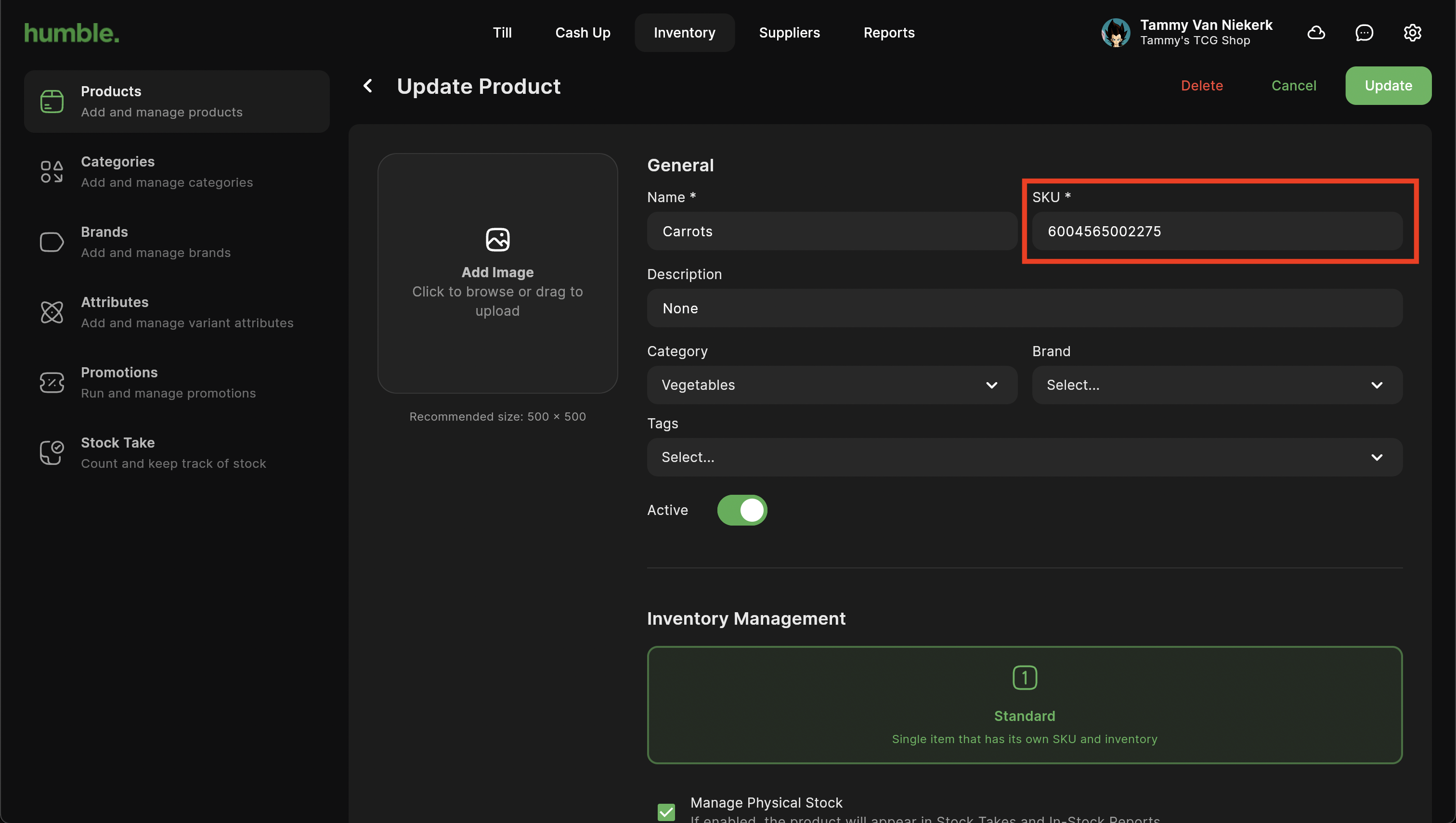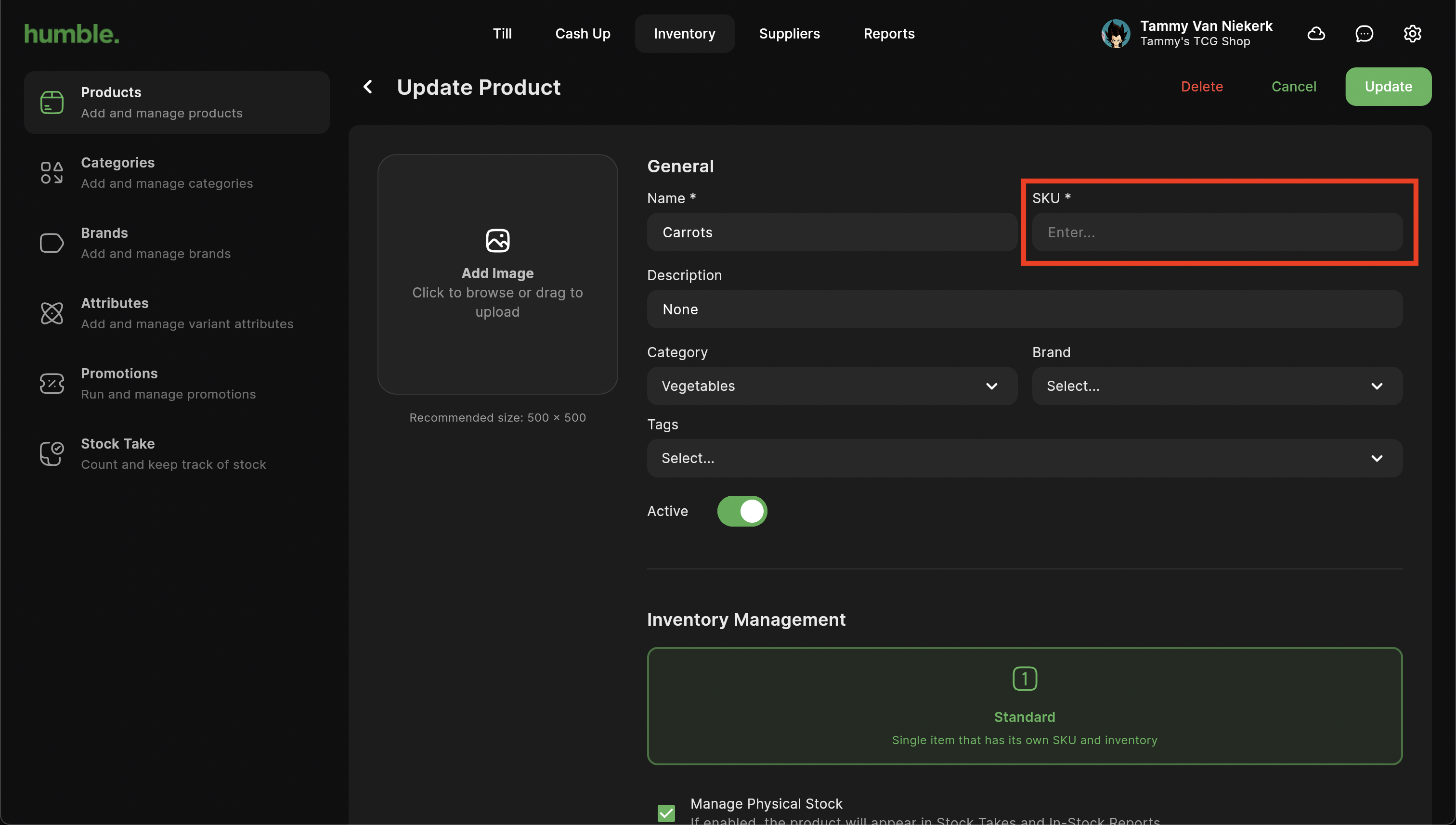 Once the SKU field is empty, scan the barcode that you would like to use for this product. It will automatically enter it in for you.