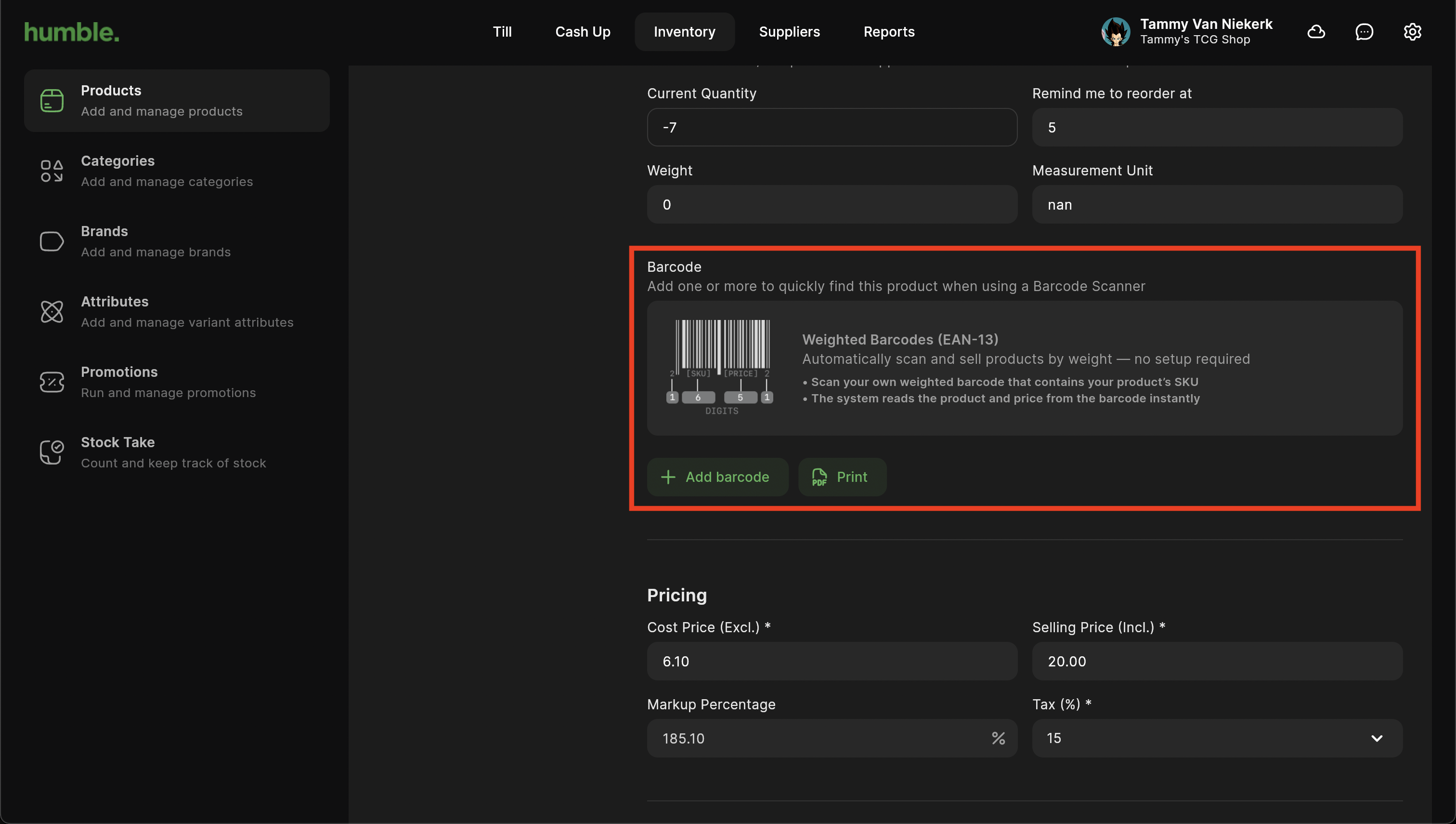 Select a product that you wish to add a barcode to.