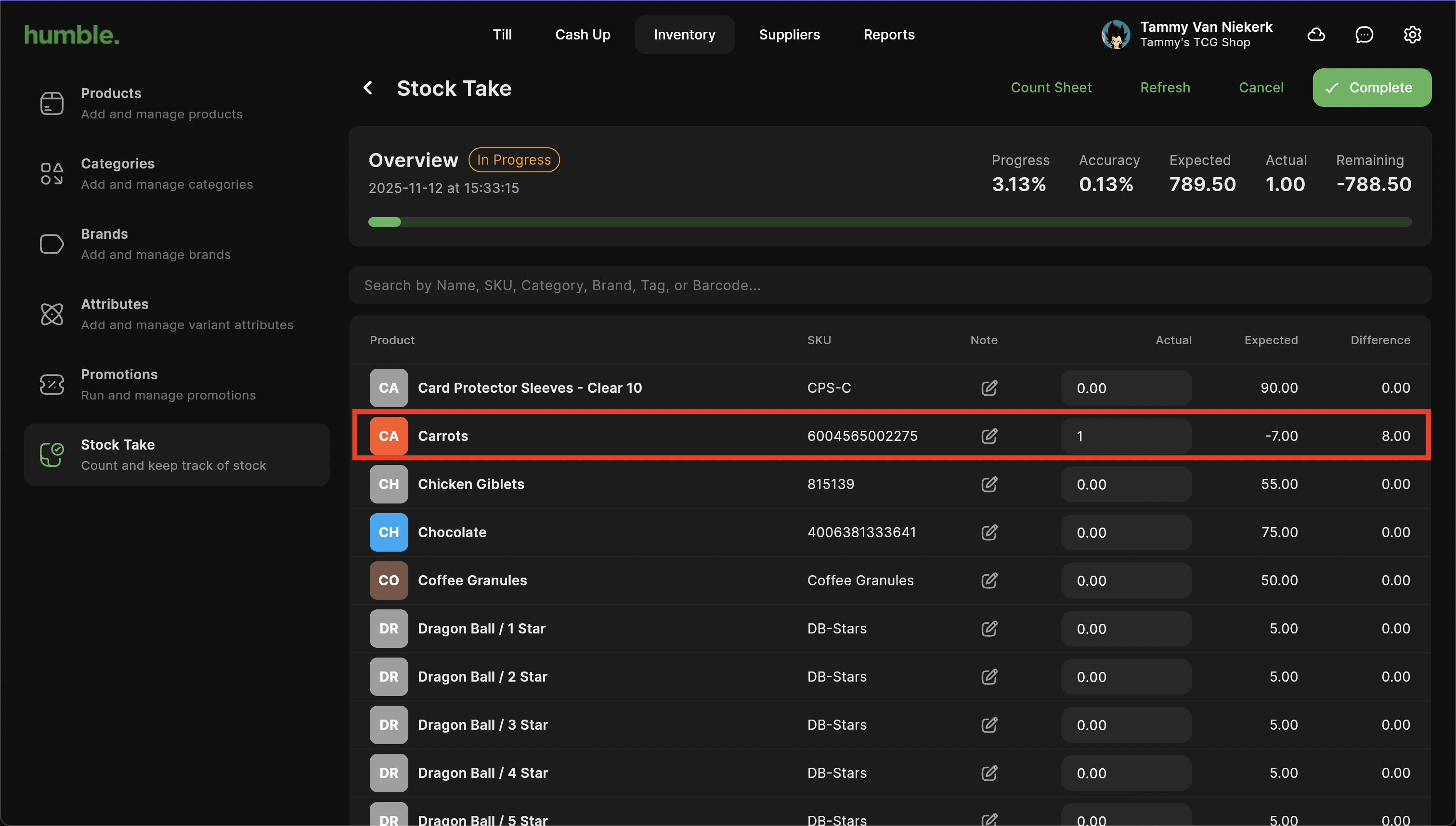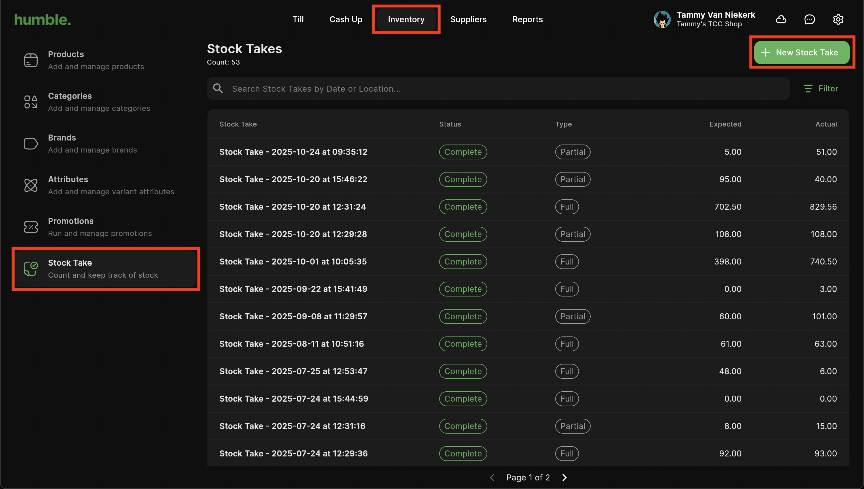 Navigate to Inventory. You will be taken to the products screen. Click on Stock Take, then click on New Stock Take.
