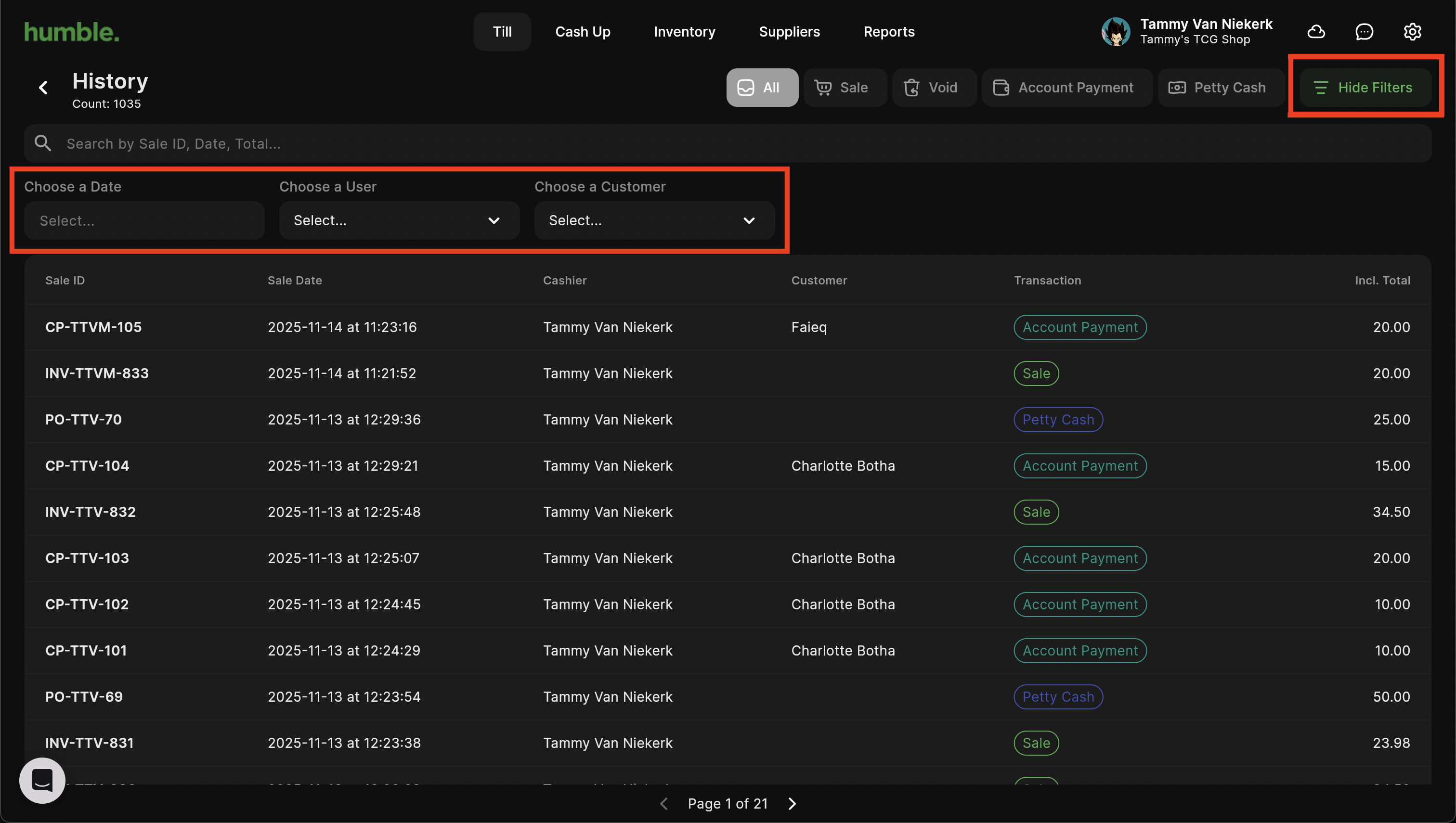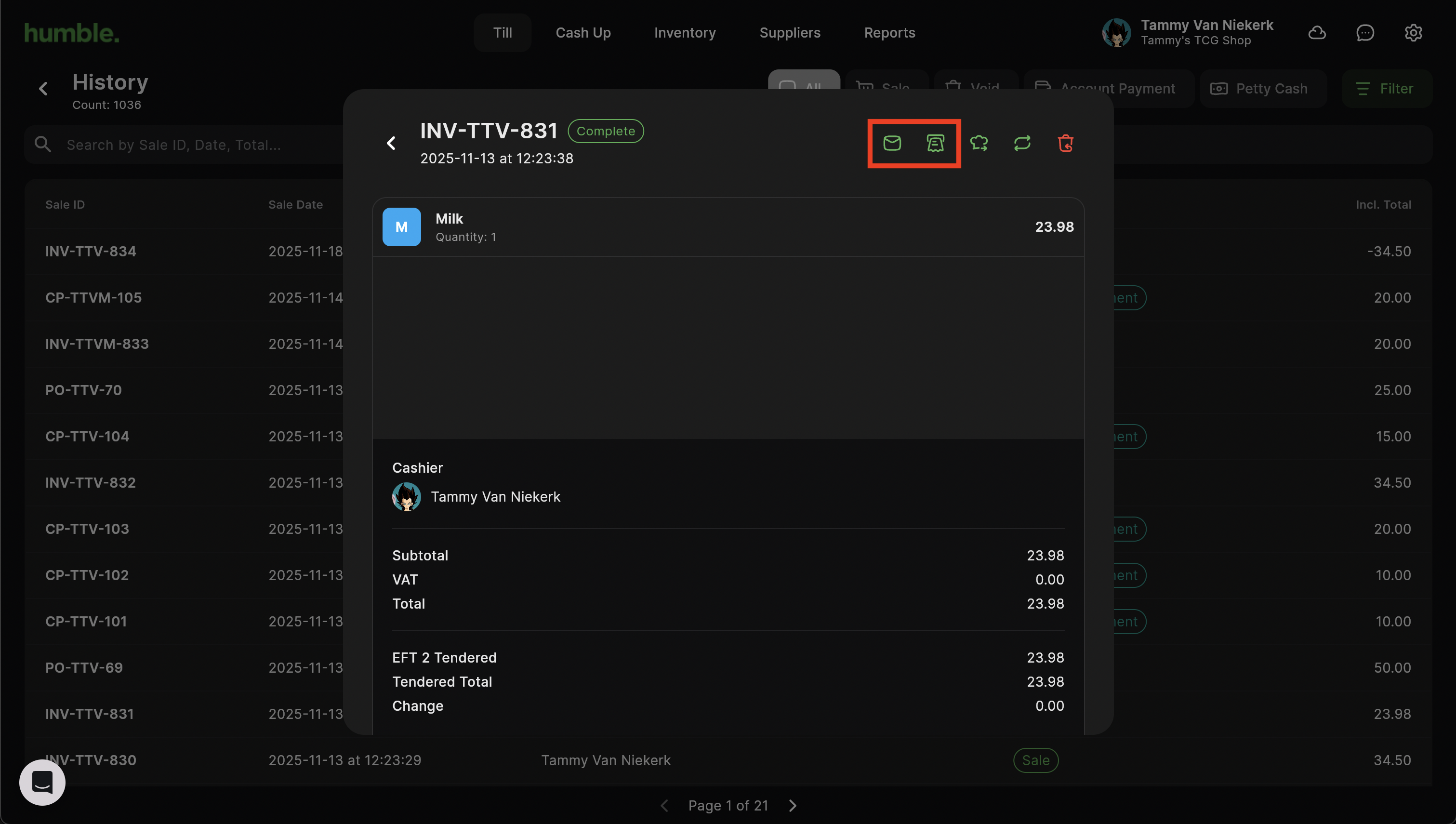 To view your previously completed/rung up sales, you can navigate to Till > History near the top right.