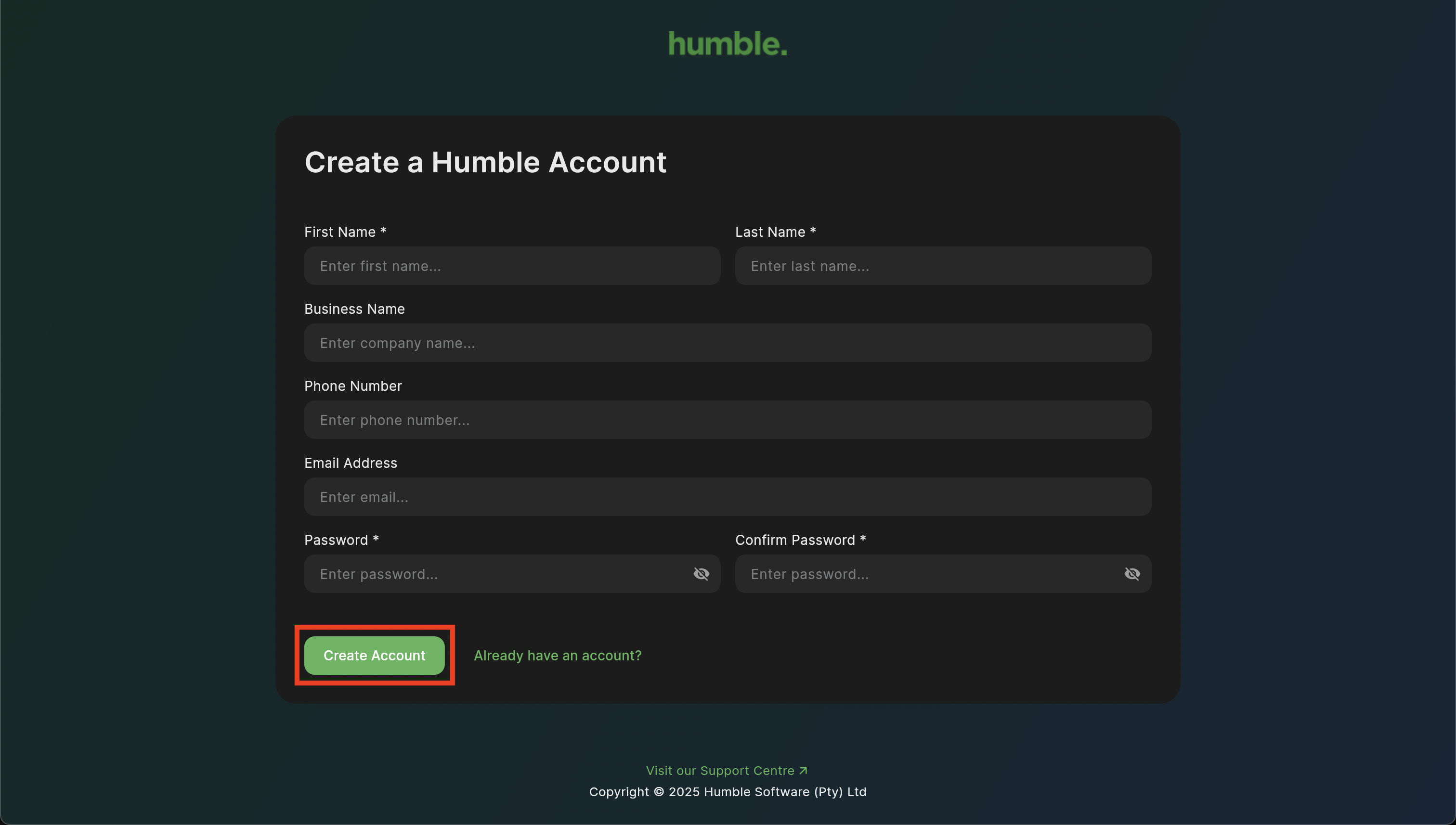 Welcome to Humble 2.0 and thank you for choosing us! In this article we will explain how to sign up as a first time user. In order to start using Humble 2.0.