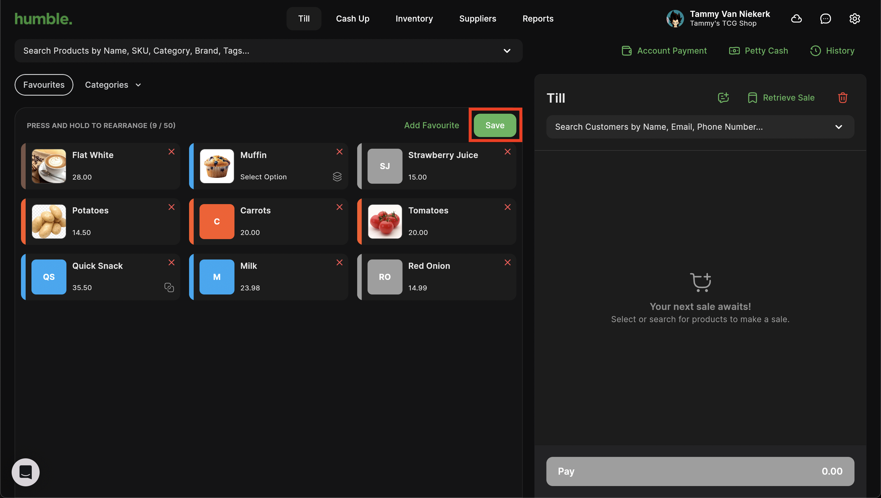 Your Favourites tab is now organised the way you like it – helping you speed up the checkout process with easy access to your most-used items.